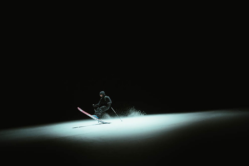 Les images finales racontent l’histoire d’un skieur solitaire évoluant dans l’immensité d’une nuit vosgienne, où chaque mouvement souligne la neige poudreuse et l’intensité de la glisse. J’ai travaillé exclusivement en couleur. Ce choix accentue l’atmosphère brute et glaciale de la montagne, rend la descente plus dramatique et immersive, et transforme chaque instant en une composition presque picturale, où la lumière et la neige semblent dialoguer.