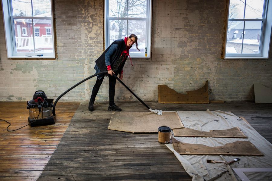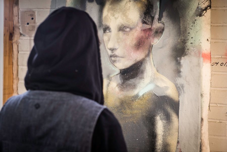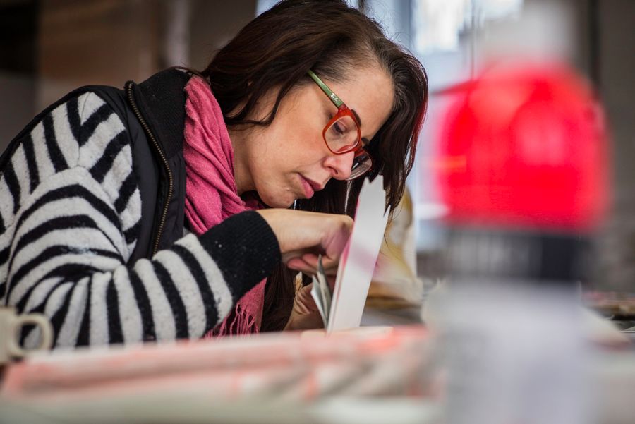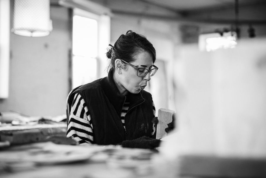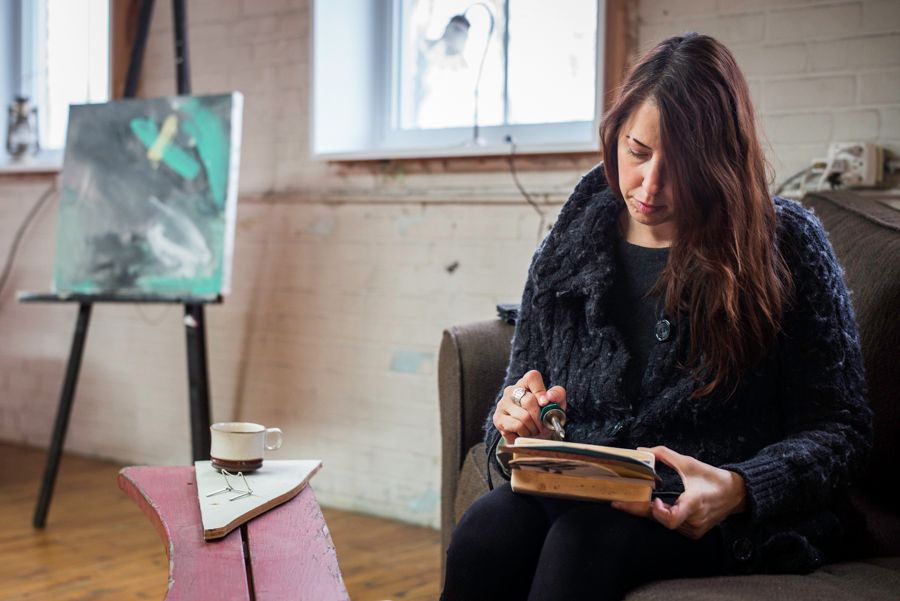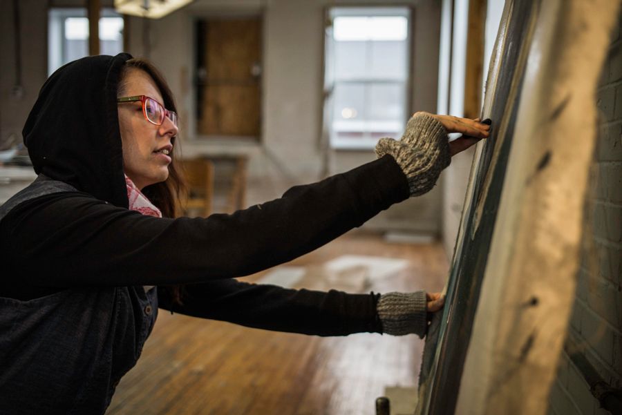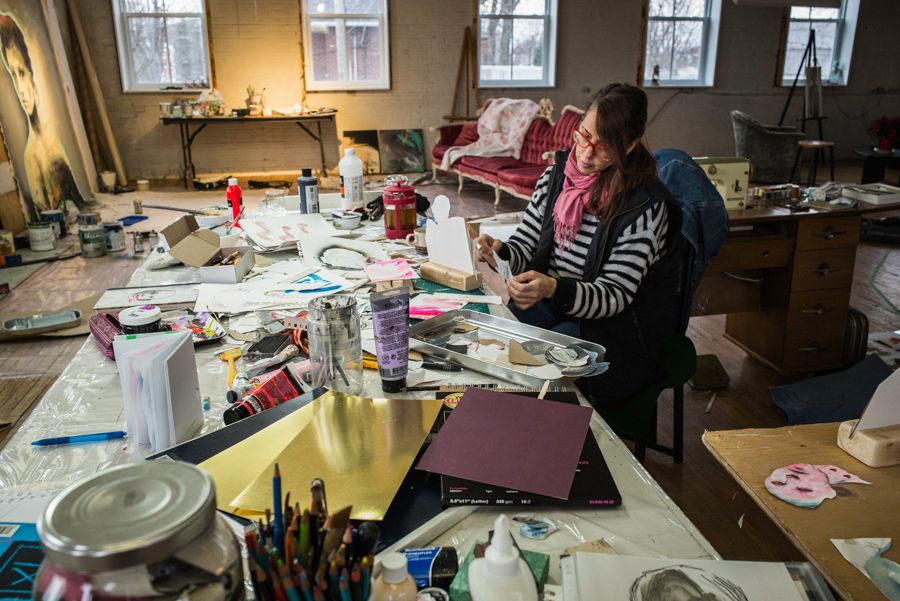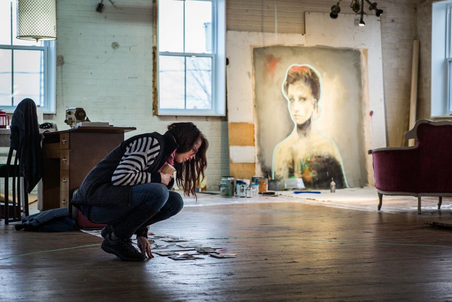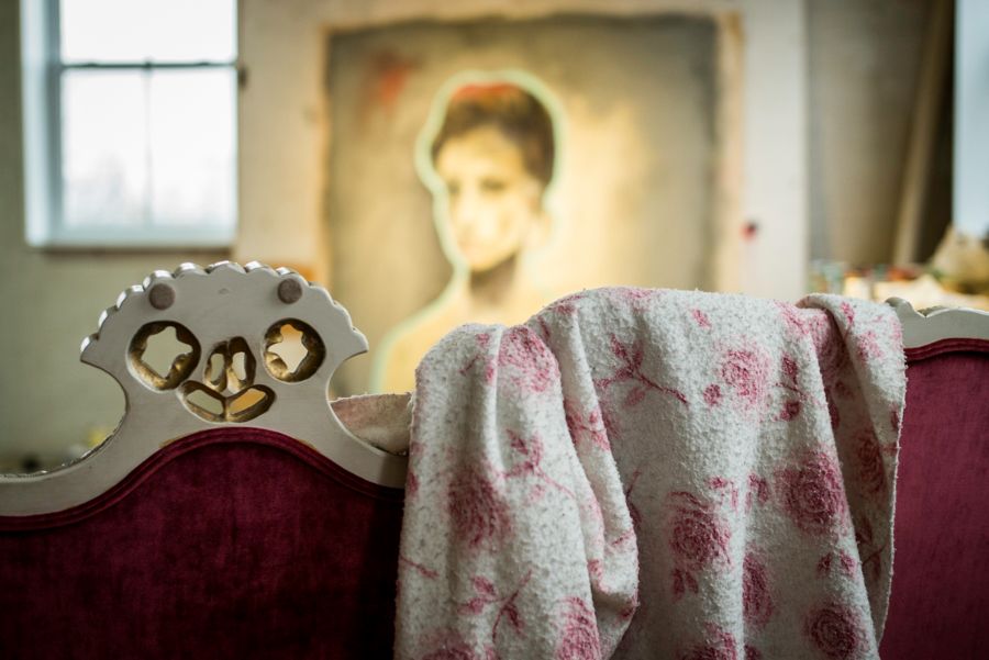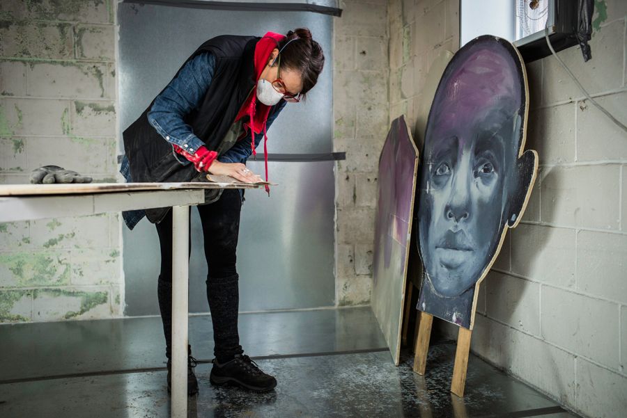 Le complexe chez Boris est un immeuble historique à vocation socioculturelle, sportive et communautaire, situé à Saint-Léonard-d’Aston, sur la rive sud du Saint-Laurent, près de Trois-Rivières. Dans ce vieux bâtiment industriel, de vastes espaces permettent la tenue d’activités très variées. À l’occasion, des artistes y séjournent, le temps de quelques créations, le temps aussi d’une exposition en galerie d’art. À l’automne 2020, l’artiste peintre montréalaise Melsa Montagne y était invitée, en résidence pour trois semaines. J’ai eu l’opportunité de l’accompagner quelques jours, au cœur de sa création, avec mon Leica.