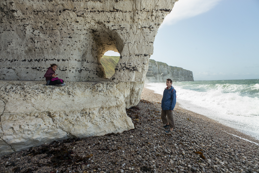 Plage d'Antifer au Sud d'Etretat en 2019 Toute la partie de la falaise au-dessus de la percée s'est effondrée, Image 15 M+Elmarit 24 asph Qui mieux que la pierre bavarde au fil du chemin se faisant, peut apporter le silence au promeneur A quoi bon se lever si c'est pour se laisser pousser par le vent La Pierre et le caillou coulent de la même façon dans l'eau |