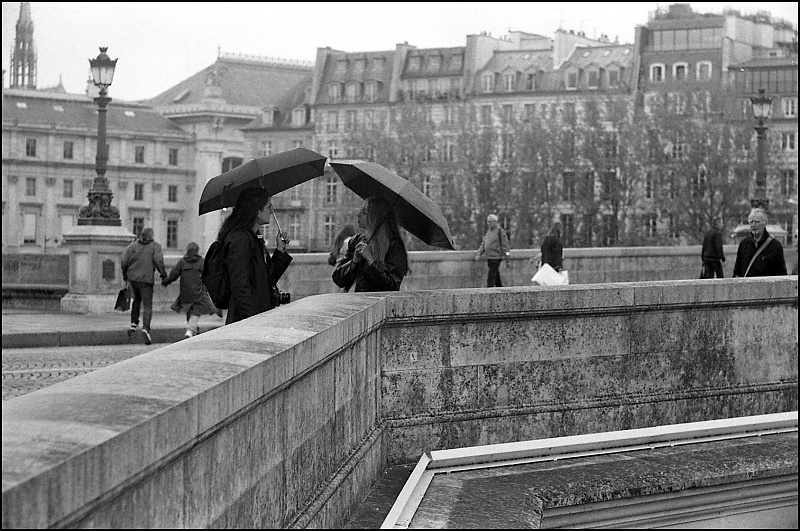 Non, un M-P (240) stock. Peut-être l’objectif, un MS-Optics 4/24 muni d’un filtre UV/skylight. Ces parapluies portaient un logo, ils n’étaient peut-être pas noirs mais violets, je ne sais pas. Une sortie de collègues de la même boite avec les pépins « maison ». Veni Vidi Vissi ! |