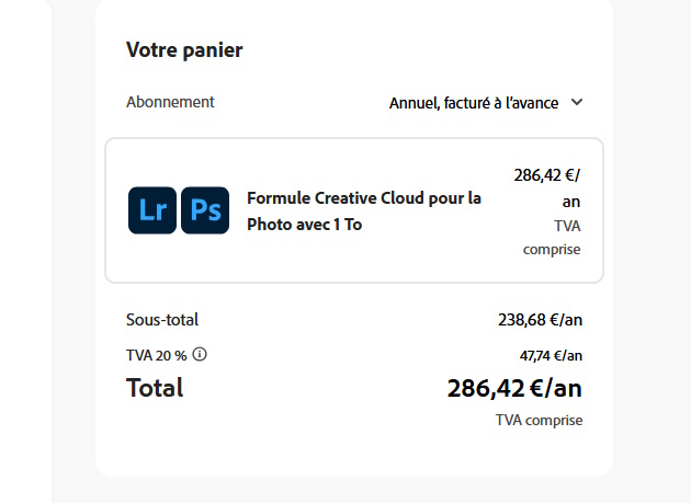Pour DXO c'est une licence pas un abonnement https://shop.dxo.com/fr/dxo-photolab-9-elite.html 239,99€ les mises à jour majeur ( DXOphotolab10 par exemple) seront payantes ( mise à niveau) Pour LR c'est un abonnement donc les mises à jour sont incluses dans l'abonnement . Tu as au niveau du panier un petit triangle qui permet de choisir si tu veux mensuel ou annuel ![]() ![]() Leica M6 - M10 - M10M - SL2-S // Voigtlander 15mm f/4,5 - Zeiss 25mm f/2,8 - Leica 35mm f/2 - Zeiss 50mm f/1,5 - Leica 90mm f/2,8 |